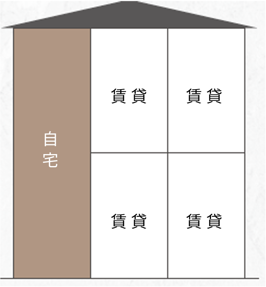 | 賃貸戸数 | 自宅+賃貸4部屋(1LDK×4) |