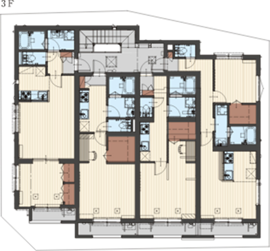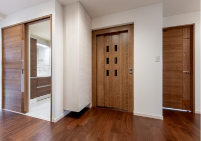 賃貸部分では玄関ドアを開けても部屋の中が見えないようにするなど、入居者のプライバシーにも配慮しています。